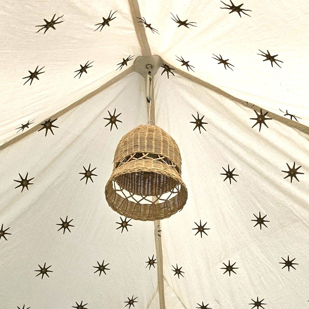 We are an exclusive shop for lanterns and glass lamps. Our lanterns come with a hanging clamp for both inside and for outside of your tent. The lantern is fitted with an electric bulb and a wire to plug in, it is ready to use.